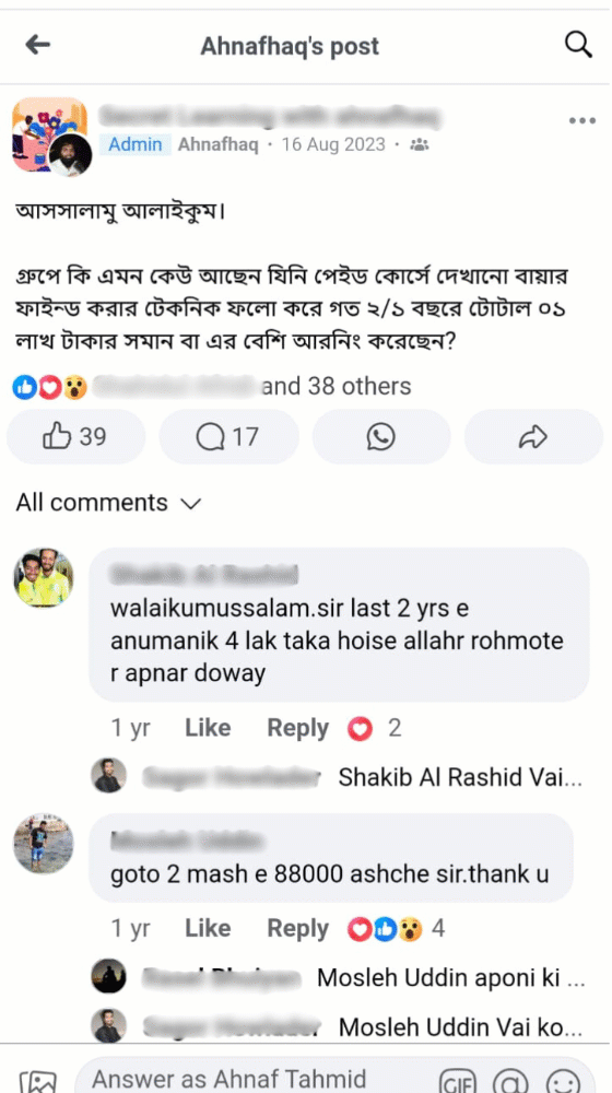Outrankerz Group এর আউটরিচ টীমলিড Instructor AhnafHaq এর তত্ত্বাবধানে কেবল Reddit থেকেই গেল বছর Outrankerz Group 05 figure USD Earning Accomplish করেছে। আপনাদের কোর্সের মেন্টর হিসেবে আছেন Instructor AhnafHaq নিজেই। এই একাডেমীতে একমাত্র আউটরিচ কোর্সগুলোই তাঁর সরাসরি তত্ত্বাবধানে পরিচালিত হচ্ছে। Outrankerz Group তাঁর নির্দেশনায় যা করতে পেরেছে, সেই জিনিস আপনিও তাঁর নির্দেশনায় করতে পারবেন বলে আমরা দৃঢ়ভাবে বিশ্বাস করি