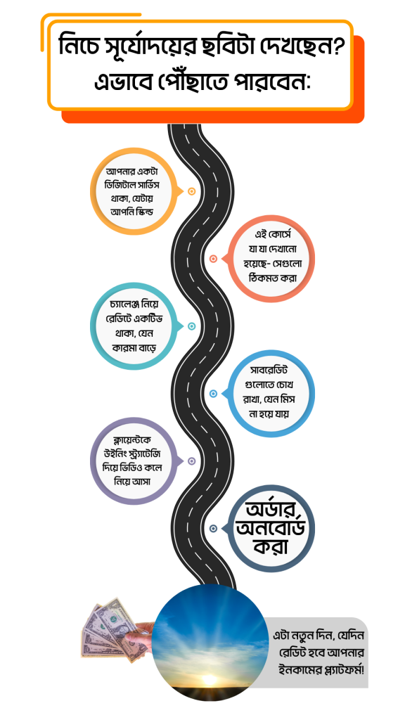 আপনি যে কোনো প্রফেশনে ফ্রিল্যান্সিং করে থাকলে এই কোর্সটা আপনার জন্য। মার্কেটপ্লেসের বাইরে থেকে ক্লায়েন্ট পাওয়ার সোর্স জানার জন্যই এই কোর্সটা